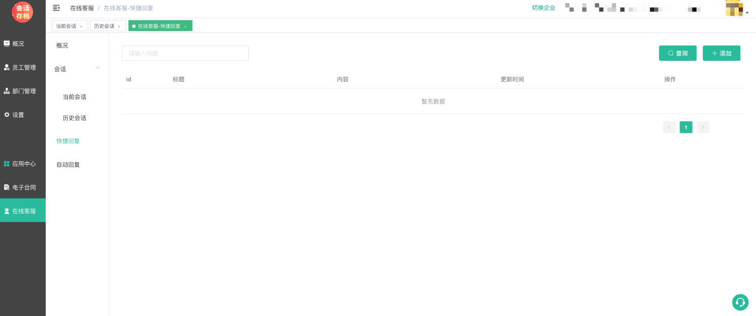 这里的快捷回复是指客服的个人快捷回复,添加后在客服会话窗口可通过快捷回复快速回复可以;